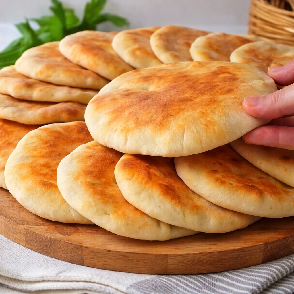 Cook each flatbread for about 2 to 3 minutes per side until golden brown and puffed.