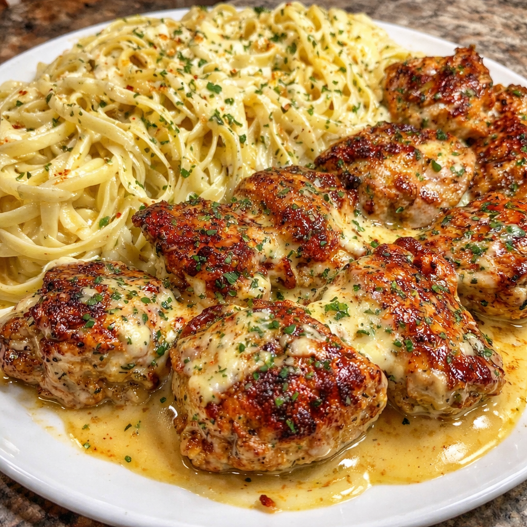 There are some dinners that feel like they were designed specifically for the end of a long day when you want something hot, rich, comforting, and completely unbothered by the idea of being “light.” This Creamy Garlic Butter Chicken and Linguine in Alfredo Sauce is absolutely one of those meals. It is buttery, garlicky, creamy, full of flavor, and the kind of plate that makes people go quiet for the first few bites because they are busy being impressed.