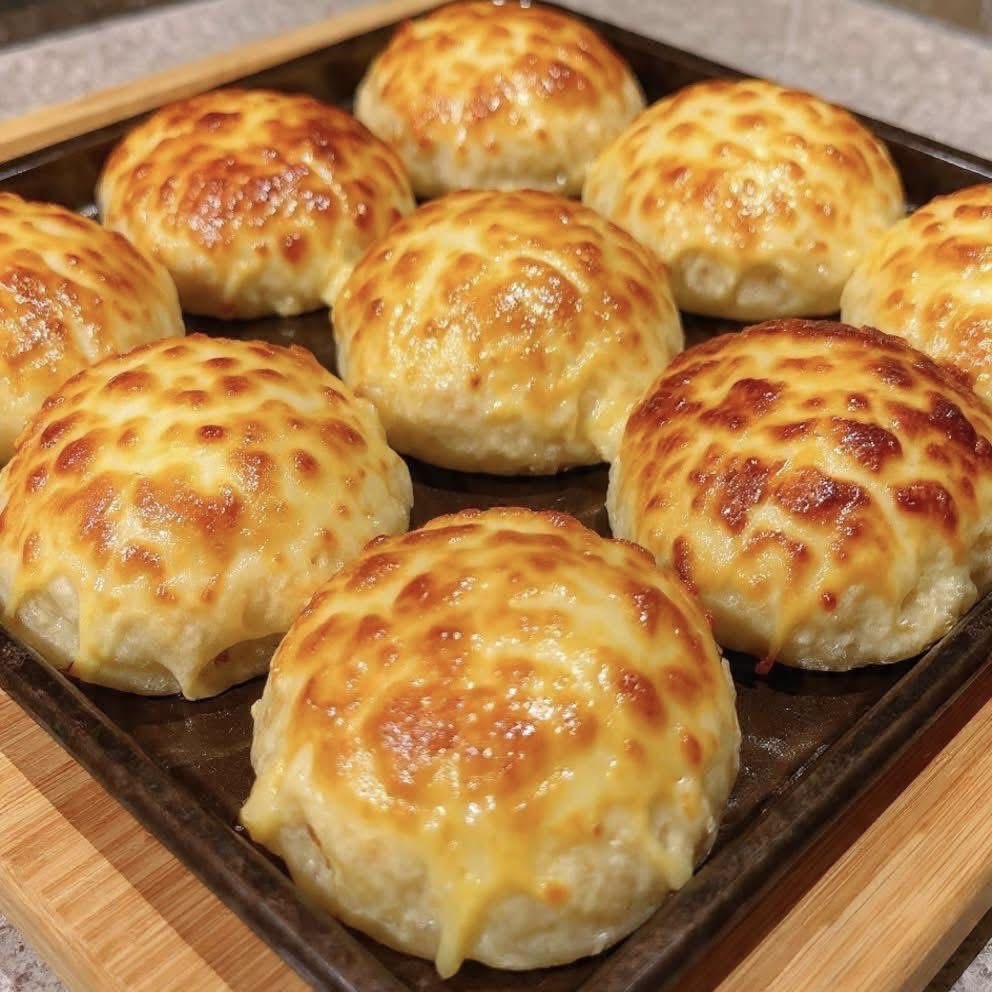 These cheesy baked buns are soft, golden, fluffy, and covered with a rich melted cheese topping that makes them almost impossible to ignore.